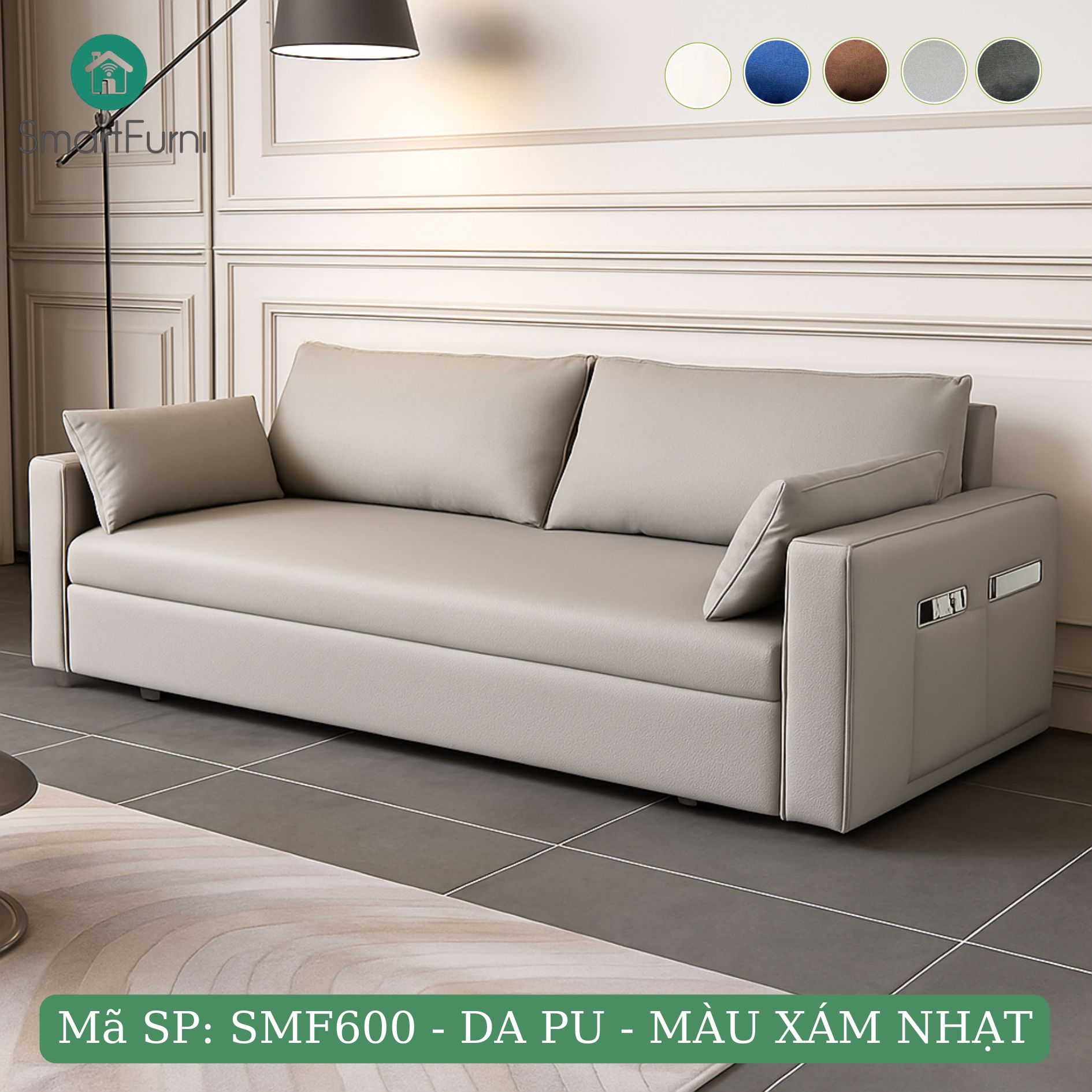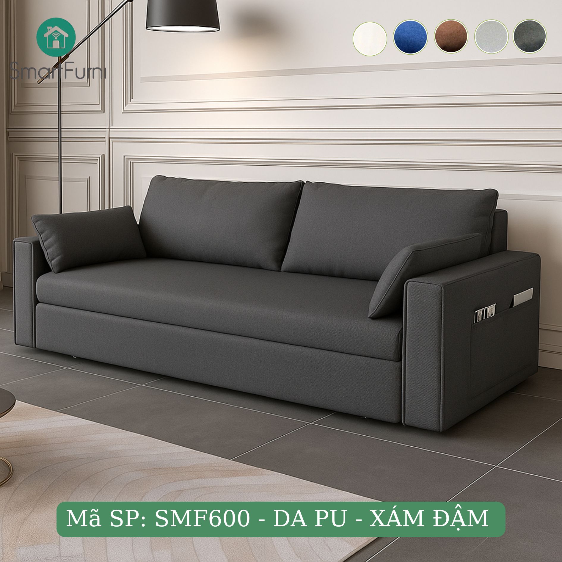 Giường Sofa đa năng SmartFurni SMF600 - Da PU cao cấp - Nhiều Size, Xám đậm