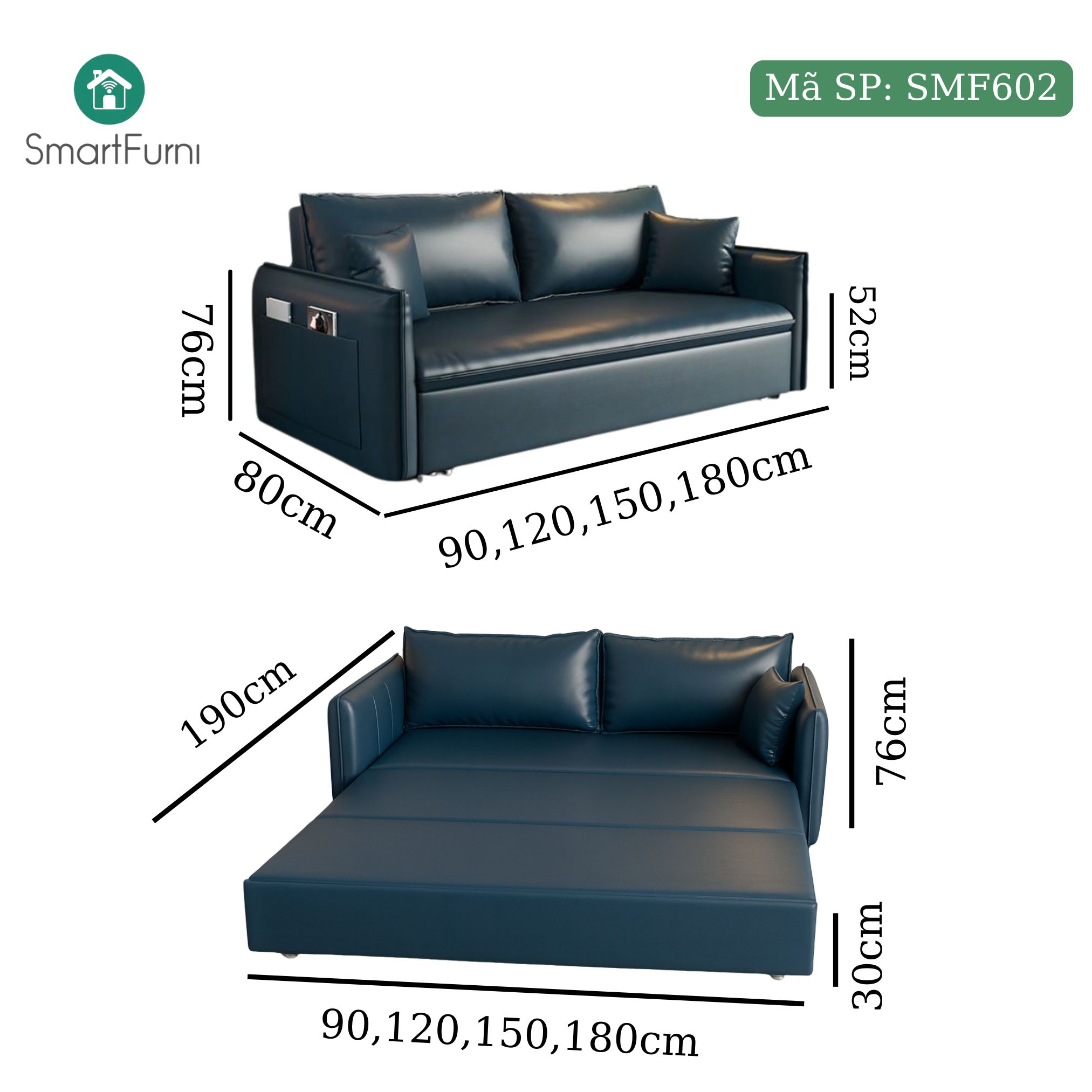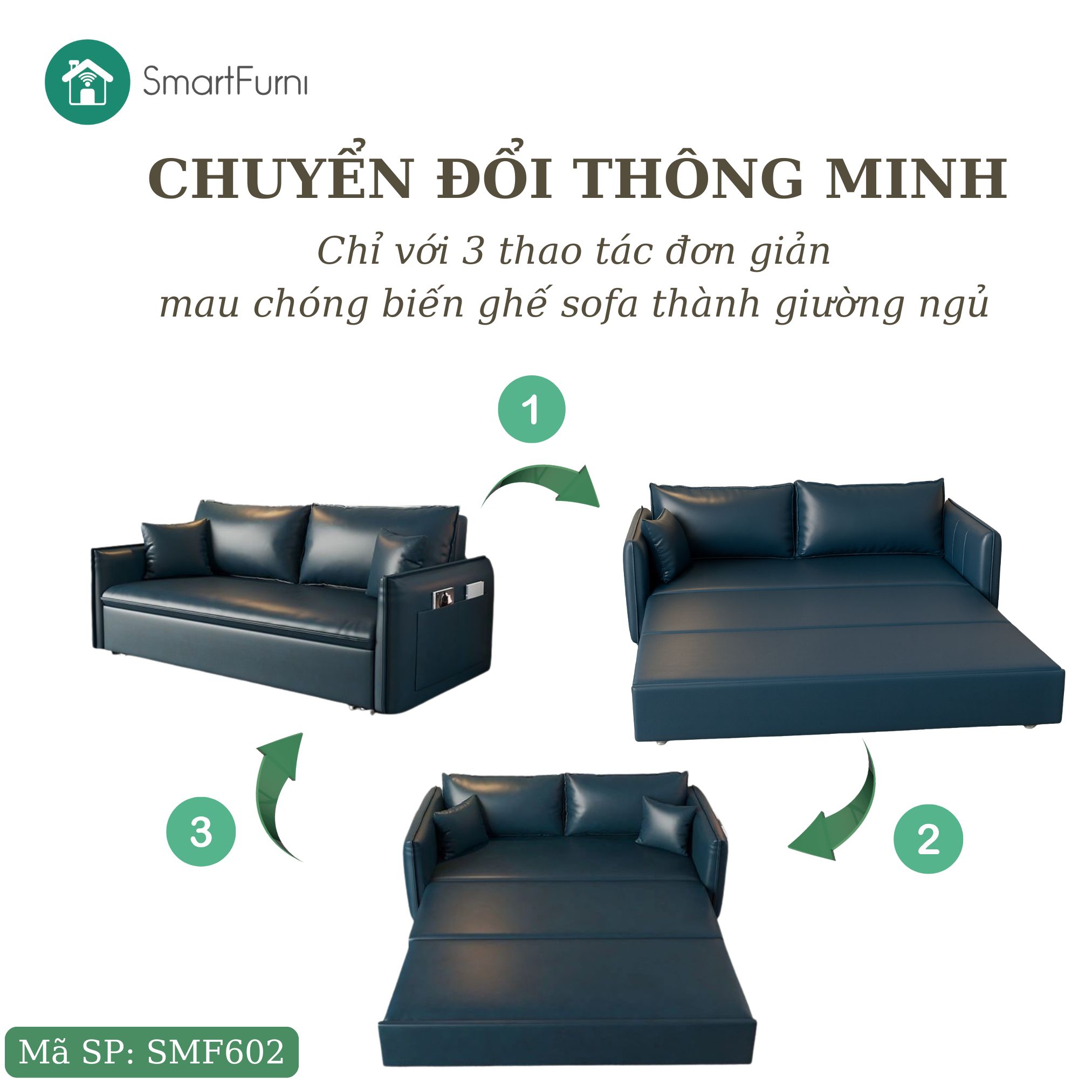 PHIÊN BẢN GIƯỜNG SOFA THÔNG MINH DA PU CAO CẤP - MÃ SP: SMF602 - CHỈ KHÁC TAY VAI SO VỚI MẪU SMF600