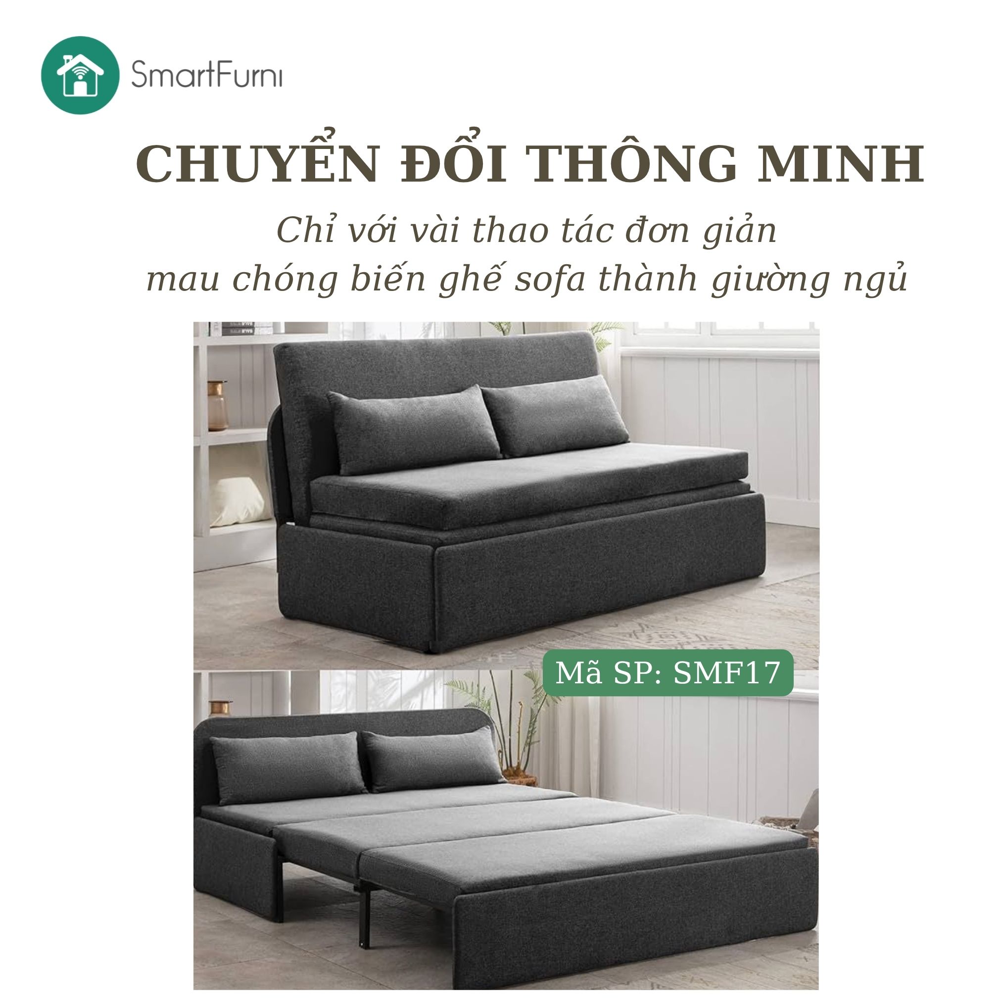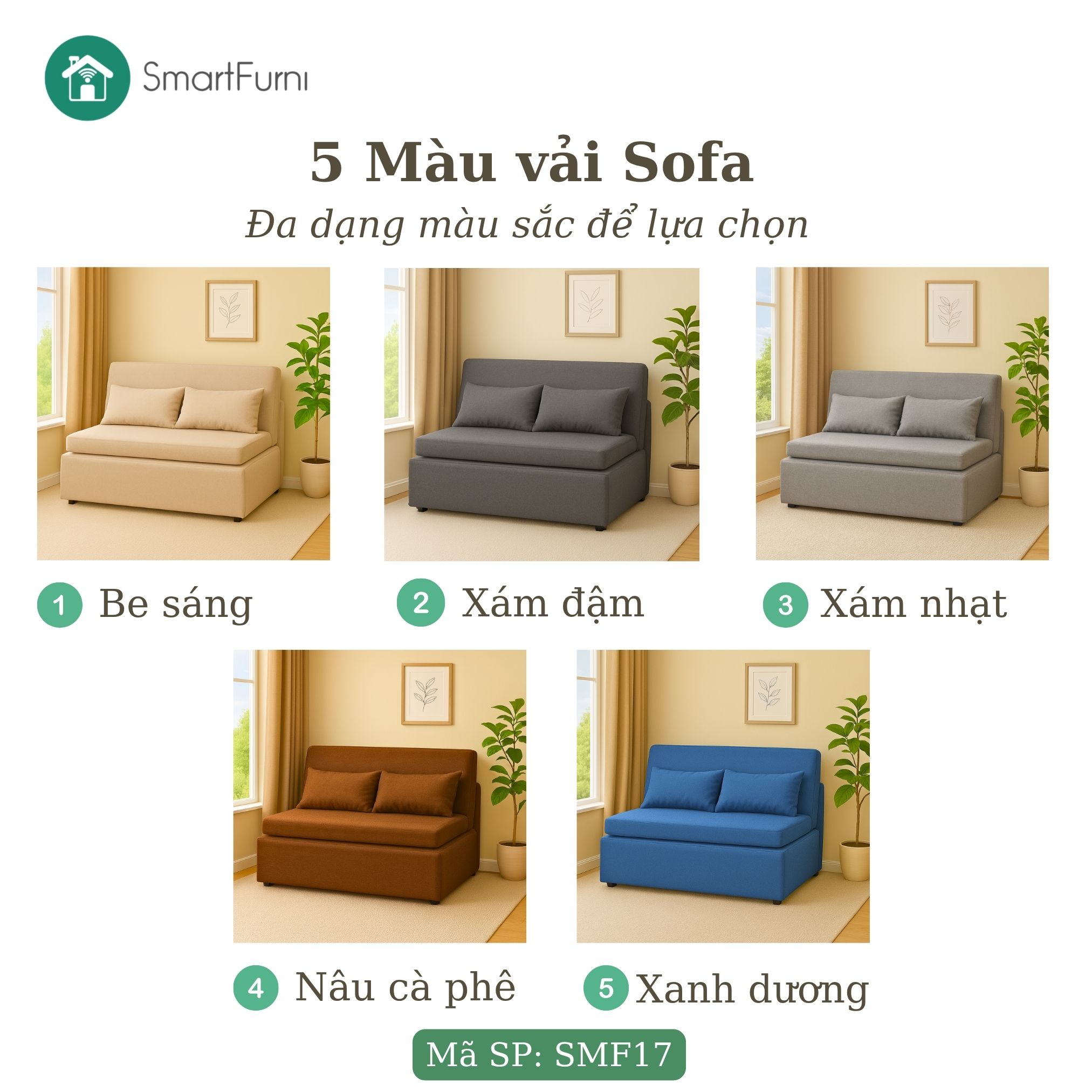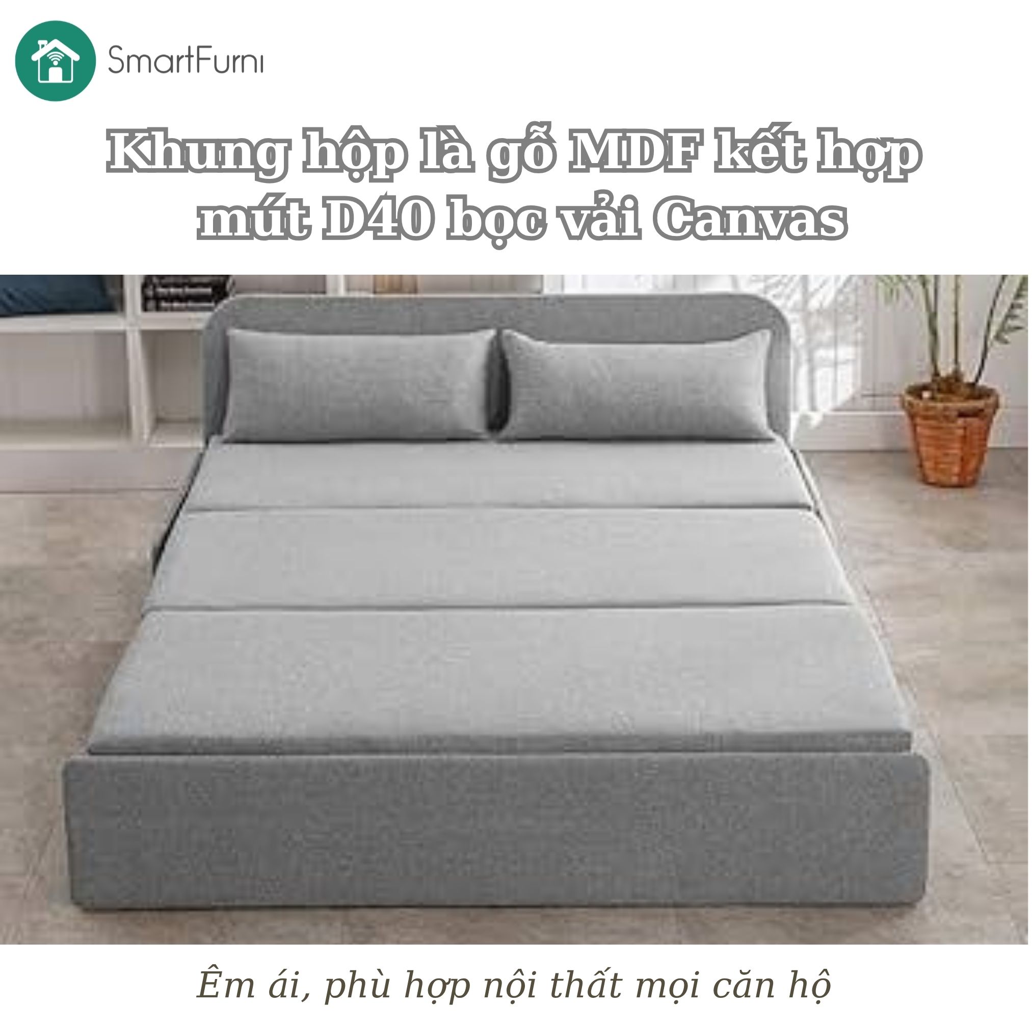 Sofa giường gấp gọn vải lanh canvas SmartFurni - SMF17 - Be sáng