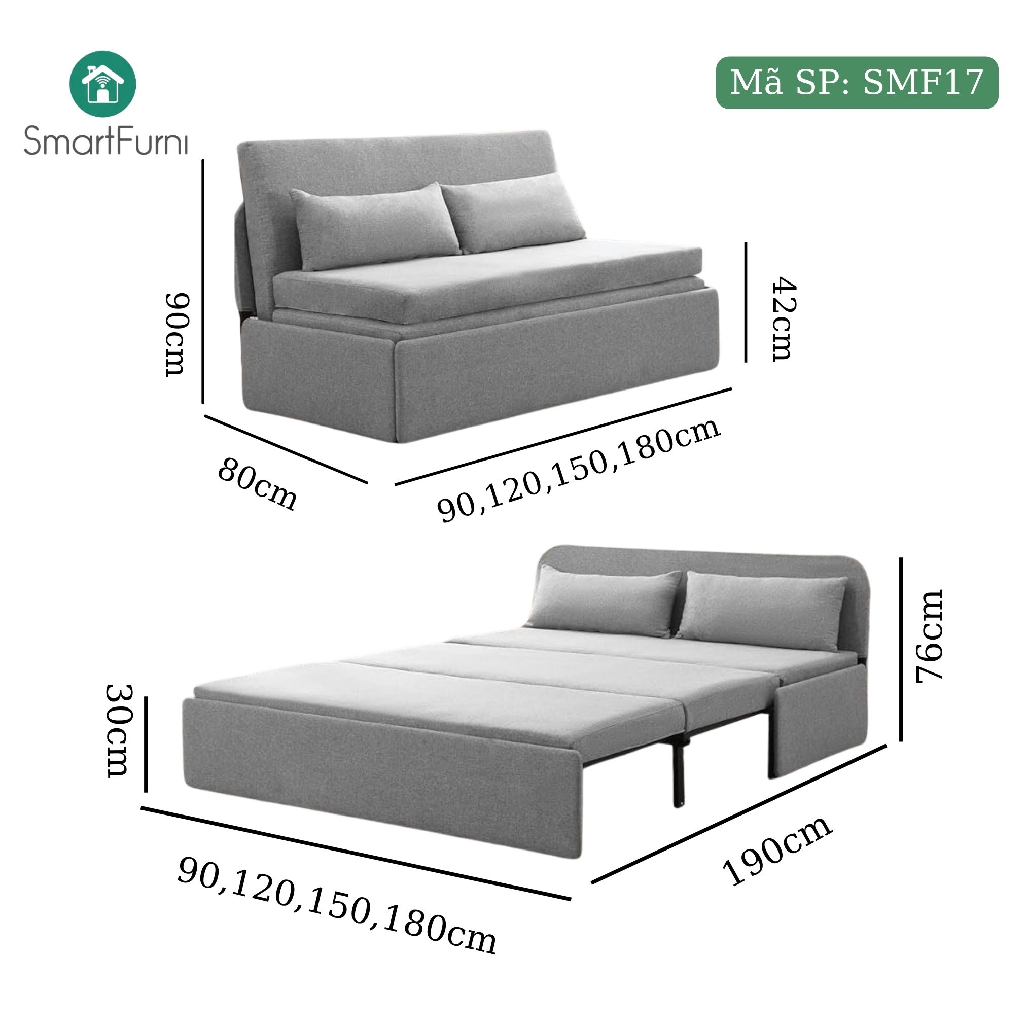 Giường sofa gấp gọn SMF17 chỉ khác so với SMF23 ở khung bao che thân giường .