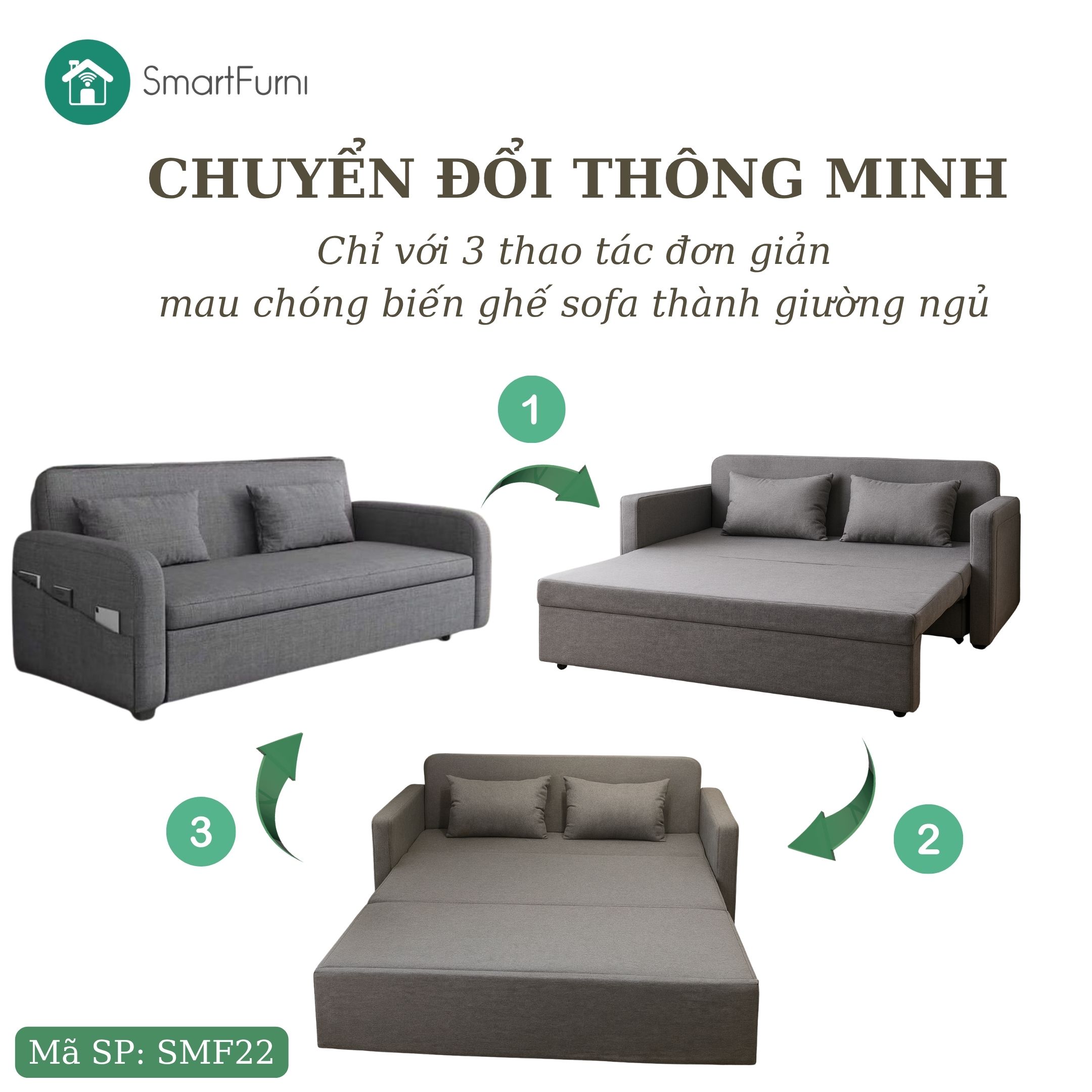 Sofa giường thông minh SmartFurni SMF12 Vải Lanh Canvas - Xám nhạt