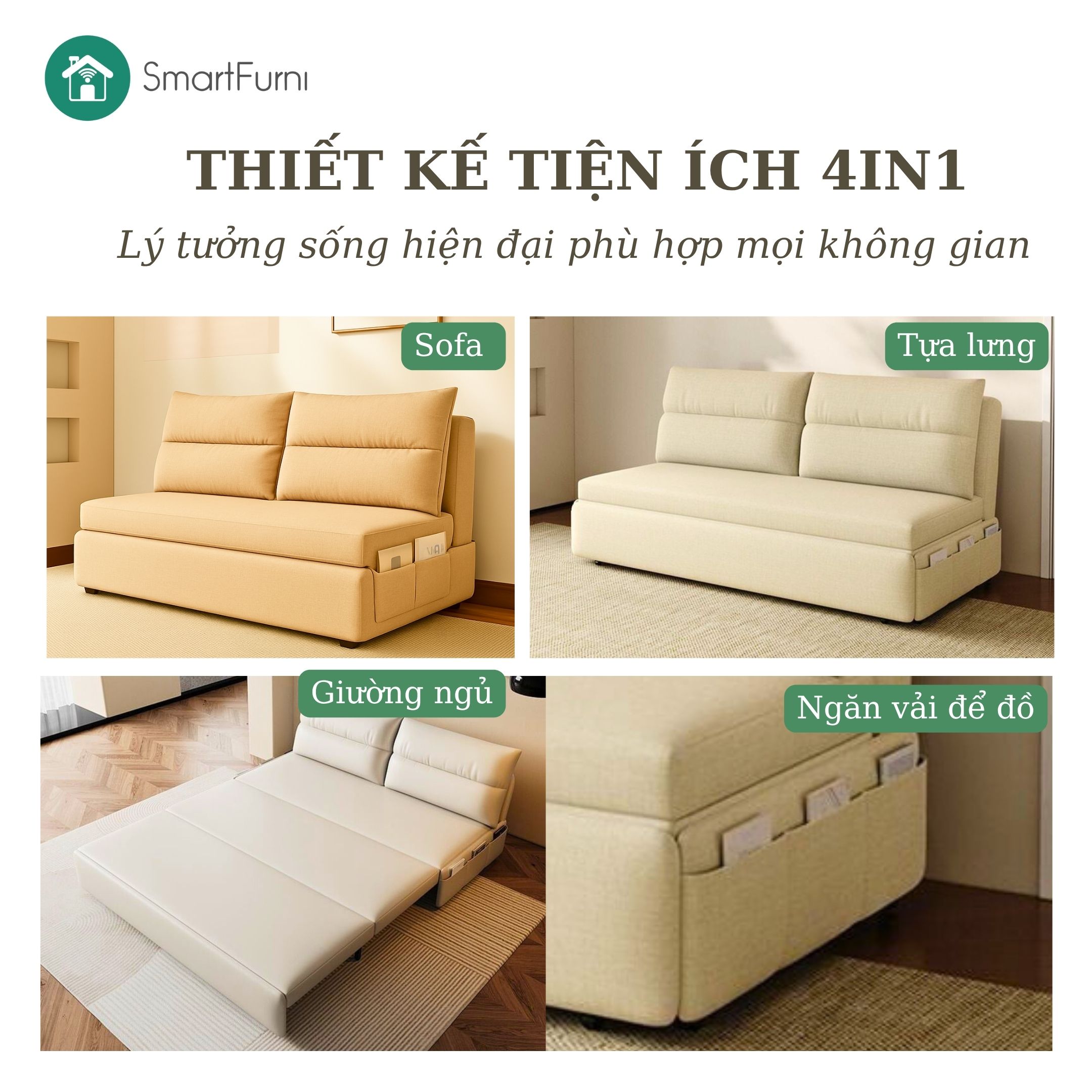 Smart Furni 17A – Giường sofa thông minh, vững chắc đến từng chi tiết, tinh tế đến từng đường may.